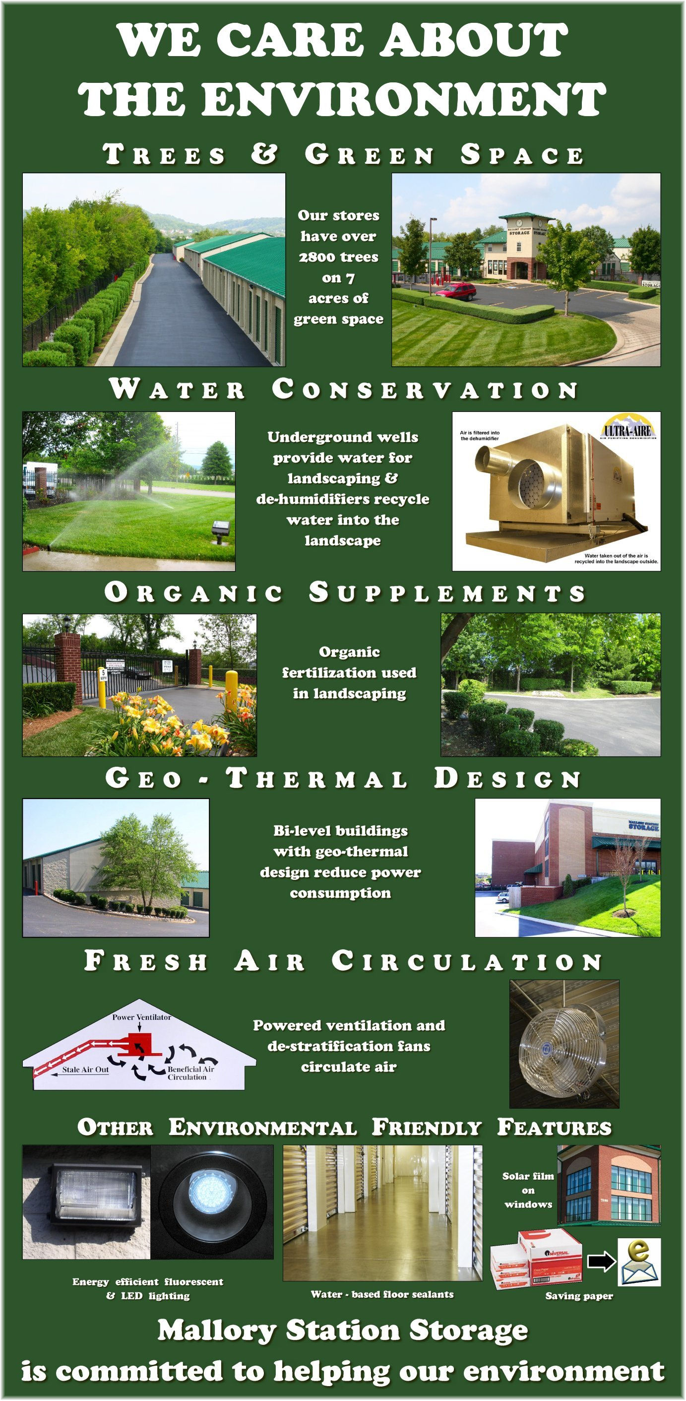 * The water that is absorbed from the dehumidifiers is dispersed throughout the landscaping on site